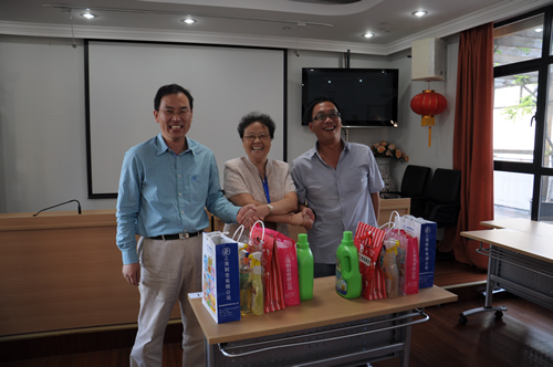 我所党支部书记周佩国为赢得冠军的陈佶、黄如辉颁奖